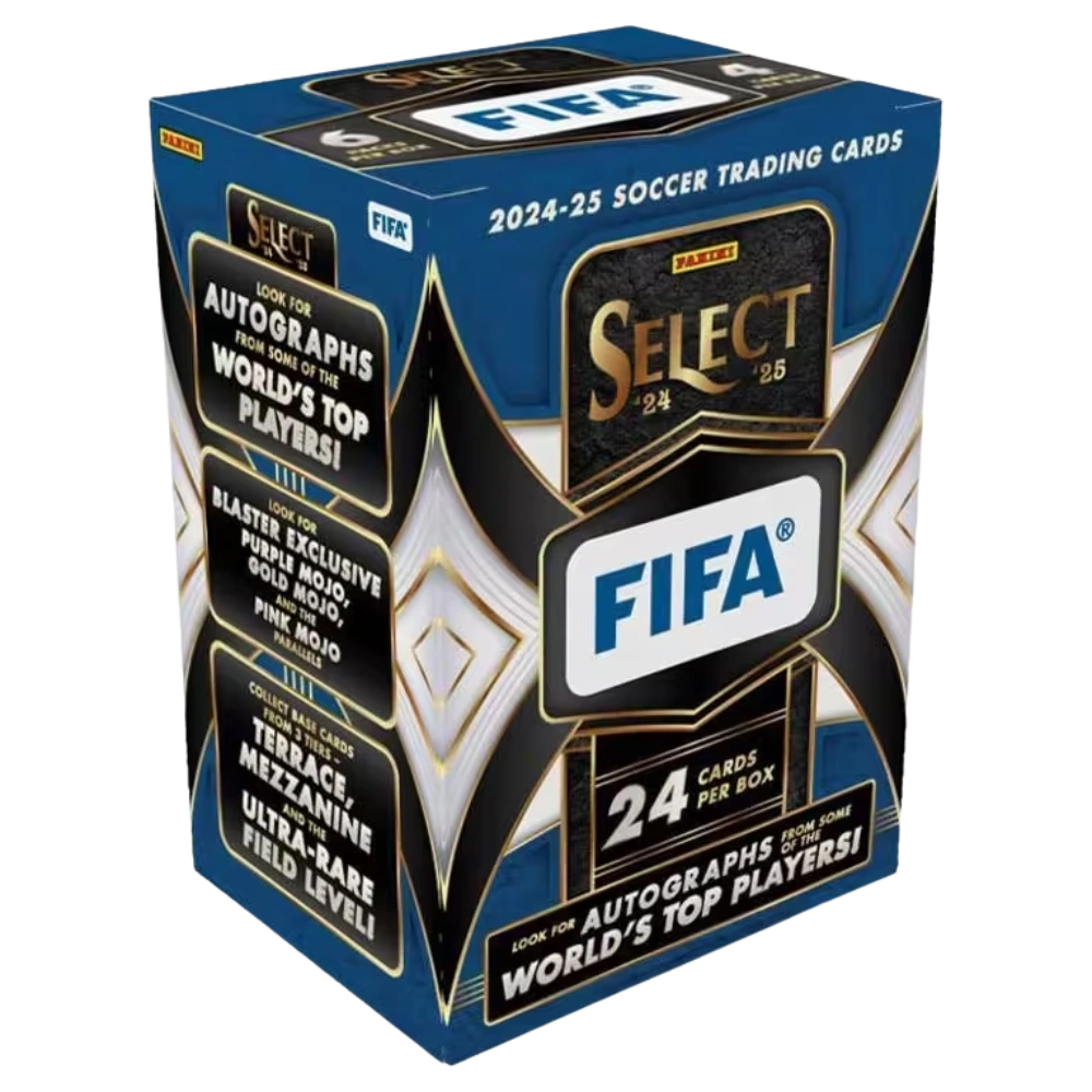 Erlebe die ganze Vielfalt des Weltfußballs in edlem Select-Design! Die Blaster Box enthält 6 Packs mit je 4 Karten und bietet dir die Chance auf exklusive Mojo Parallels (Purple, Gold & Pink), seltene Checkerboard-Karten und spannende Inserts wie Equalizers, Select Future, Unstoppable und Snapshots.